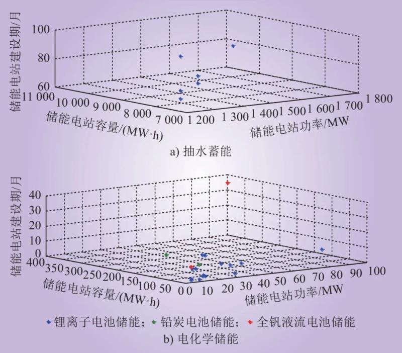 從儲(chǔ)能電站容量對(duì)建設(shè)期影響分析來(lái)看,受電化學(xué)儲(chǔ)能電站集成方式、項(xiàng)目施工等因素的影響,電站容量對(duì)鋰離子電池儲(chǔ)能電站、鉛炭電池儲(chǔ)能電站建設(shè)周期影響不顯著,對(duì)全釩液流電池儲(chǔ)能電站建設(shè)周期影響較大;抽水蓄能電站建設(shè)周期主要受建設(shè)方案、工程基建、地址地理信息等因素的制約,電站規(guī)模與建設(shè)周期之間不存在明顯的關(guān)聯(lián)關(guān)系。