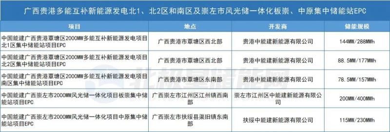 根據(jù)系統(tǒng)初步規(guī)劃,中國能建廣西貴港覃塘區(qū)2000MW多能互補新能源發(fā)電項目和中國能建廣西崇左市2000MW風光儲一體化項目將建設5個儲能站,擬分為5個標段進行招標。在新能源相對集中的北1區(qū)光伏匯集站、北2區(qū)光伏匯集站、南區(qū)光伏匯集站、板崇光伏匯集站、中原光伏匯集站旁分別建設配套集中儲能電站。其中,北1區(qū)光伏匯集站旁儲能電站規(guī)模144MW/288MWh,北2區(qū)光伏匯集站旁儲能電站規(guī)模88.5MW/177MWh,南區(qū)光伏匯集站旁儲能電站規(guī)模78.5MW/157MWh,板崇光伏匯集站旁儲能電站規(guī)模200MW/400MWh,中原光伏匯集站旁儲能電站規(guī)模115MW/230MWh。最終以接入系統(tǒng)審查意見為準。儲能電站與光伏匯集站同步建成,儲能系統(tǒng)設備可隨新能源發(fā)電項目分批同步投建、同步并網(wǎng)。