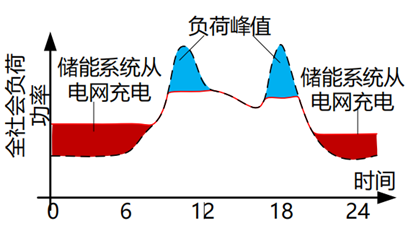 數(shù)據(jù)中心儲(chǔ)能系統(tǒng)盈利模式主要以削峰填谷為主,利用儲(chǔ)能裝置,分擔(dān)電網(wǎng)用電高峰時(shí)段用電負(fù)荷,拉高低谷時(shí)段用電負(fù)荷,促進(jìn)發(fā)電與用電平衡,其運(yùn)行模式如下圖: