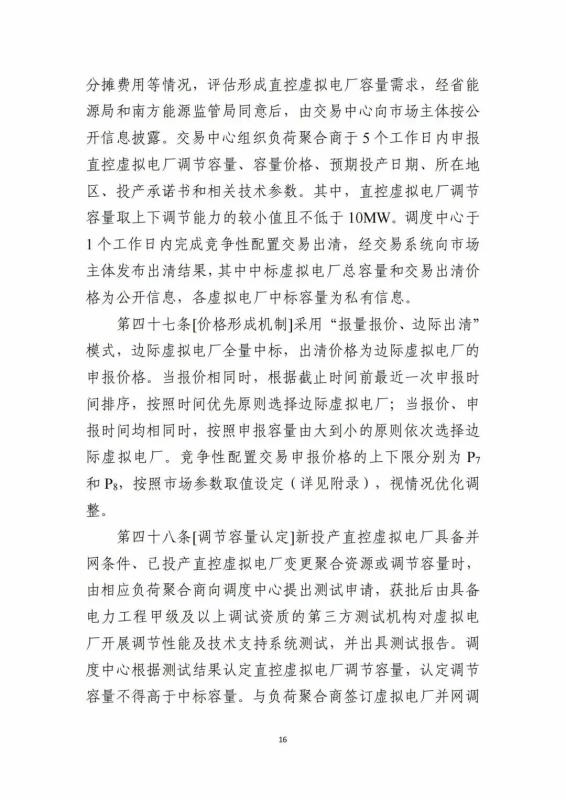非直控虛擬電廠的調節(jié)能力為所聚合響應資源的響應能力之和且不低于0.3MW,單次響應持續(xù)時間不低于2小時;直控虛擬電廠上下調節(jié)能力應分別不低于10MW,調節(jié)速率不低于(出力上限*2%)/ 分鐘,對調度指令的響應時間不大于1分鐘,單次響應持續(xù)時間不低于2小時。