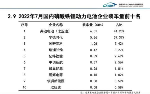 不過,在磷酸鐵鋰電池7月的裝車量上,比亞迪卻超過了寧德時代,占據(jù)了第一的位置。