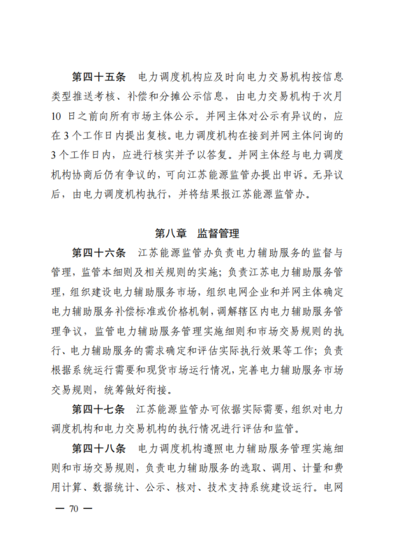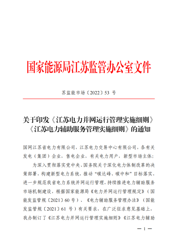 關(guān)于印發(fā)《江蘇電力并網(wǎng)運(yùn)行管理實(shí)施細(xì)則》《江蘇電力輔助服務(wù)管理實(shí)施細(xì)則》的通知
