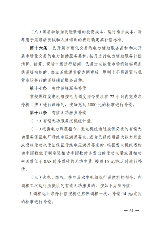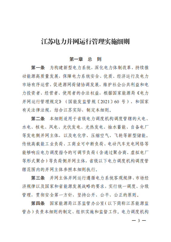 為深入貫徹落實(shí)黨中央、國務(wù)院關(guān)于深化電力體制改革的決策部署,構(gòu)建新型電力系統(tǒng),推動“碳達(dá)峰、碳中和”目標(biāo)落實(shí),進(jìn)一步規(guī)范我省電力系統(tǒng)并網(wǎng)運(yùn)行管理,持續(xù)推進(jìn)電力輔助服務(wù)市場機(jī)制建設(shè),根據(jù)國家能源局《電力并網(wǎng)運(yùn)行管理規(guī)定》(國能發(fā)監(jiān)管規(guī)〔2021〕60號)、《電力輔助服務(wù)管理辦法》(國能發(fā)監(jiān)管規(guī)〔2021〕61號)有關(guān)要求,在廣泛征求意見基礎(chǔ)上,我辦制訂了《江蘇電力并網(wǎng)運(yùn)行管理實(shí)施細(xì)則》《江蘇電力輔助服務(wù)管理實(shí)施細(xì)則》,現(xiàn)印發(fā)給你們,請認(rèn)真貫徹執(zhí)行。