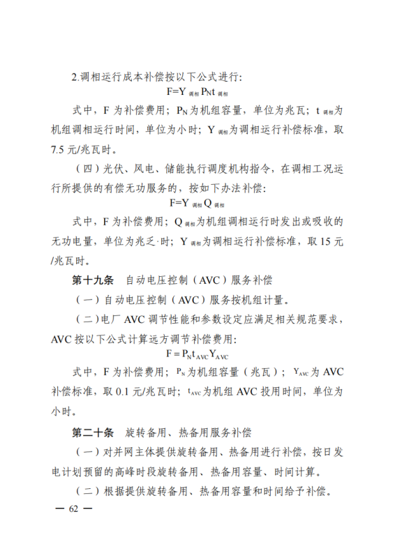 光伏、風(fēng)電、儲能執(zhí)行調(diào)度機(jī)構(gòu)指令,在調(diào)相工況運(yùn)行所提供的有償無功服務(wù)的,按15元/兆瓦時(shí)補(bǔ)償。