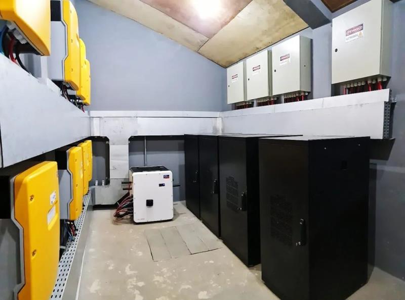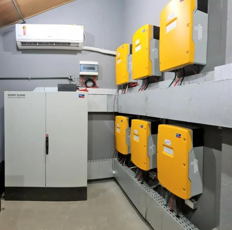 儲能系統(tǒng)采用12臺適用于離網島嶼項目的SMA Sunny Island儲能逆變器,搭載UZ Energy深圳昱澤提供的電池系統(tǒng)--4臺電池柜,每臺機柜內包含7組電池。