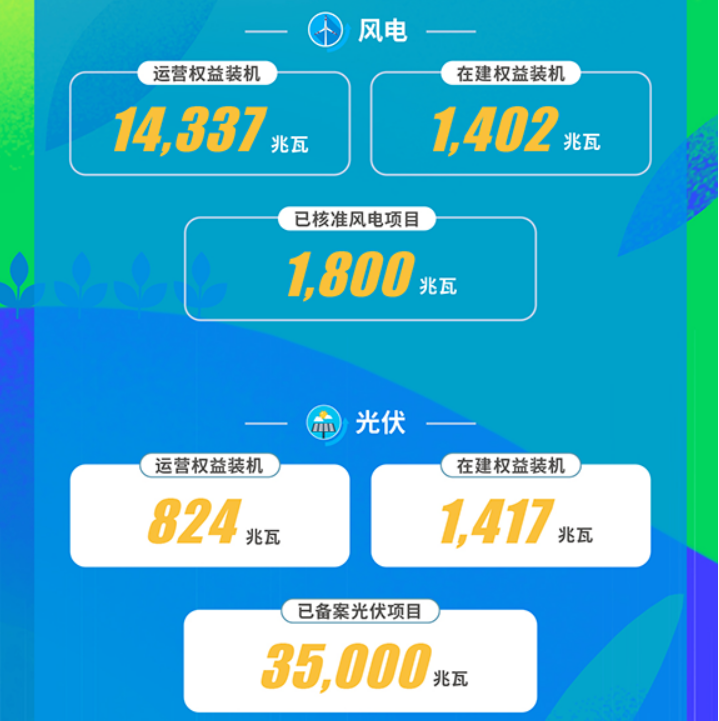 2021年,風(fēng)電、光伏累計新增權(quán)益裝機2.535GW;