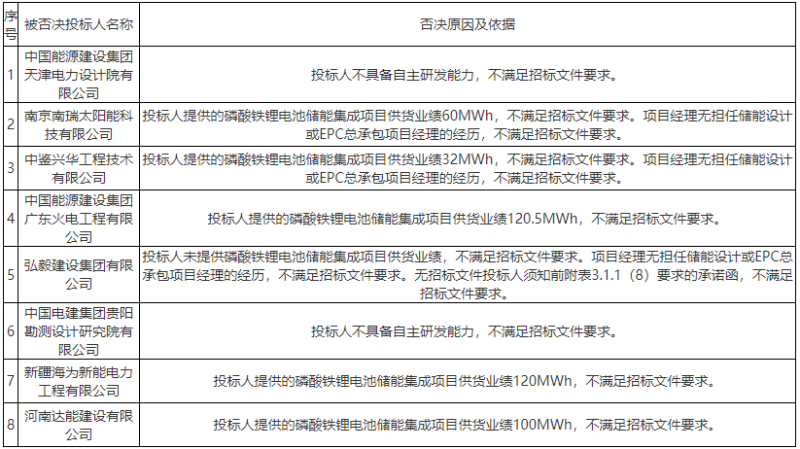 此外,本次共有8名被否決投標(biāo)人,企業(yè)名稱(chēng)及否決原因如下: