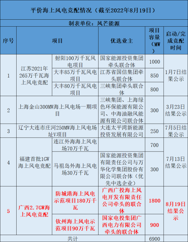 中國儲能網(wǎng)訊:8月19日,廣西海上風(fēng)電示范項目競爭配置結(jié)果公示。