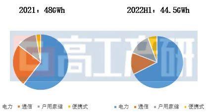 2021年和2022年H1各領(lǐng)域儲(chǔ)能電池出貨結(jié)構(gòu)(含出口)