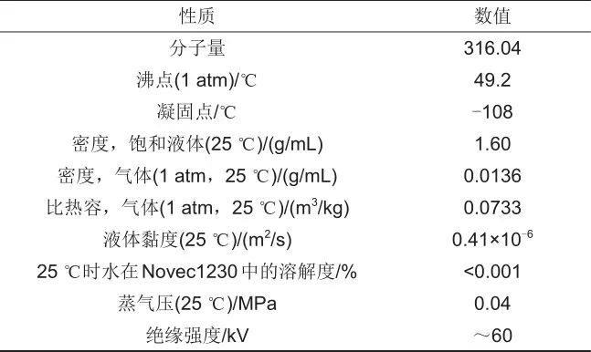 全氟己酮滅火劑常溫下是一種透明、無(wú)色、絕緣的液體,是哈龍和HFCs類滅火劑的優(yōu)良替代品,最先由美國(guó)3M公司研制開(kāi)發(fā),商標(biāo)為Novec1230,主要參數(shù)見(jiàn)表1。全氟己酮是以物理吸熱為主的潔凈氣體滅火劑,具有較高熱容量,在合適的濃度下,滅火劑釋放后與空氣形成氣態(tài)混合物,吸收足夠多熱量,使環(huán)境溫度降到熄滅溫度點(diǎn)以下[9]。此外全氟己酮含氟滅火劑受熱易發(fā)生脫HF反應(yīng)、C—C鍵斷裂反應(yīng),產(chǎn)生CF3、CF2、CFO等自由基可以捕捉、消耗火焰中的自由基,中斷燃燒鏈?zhǔn)椒磻?yīng)。