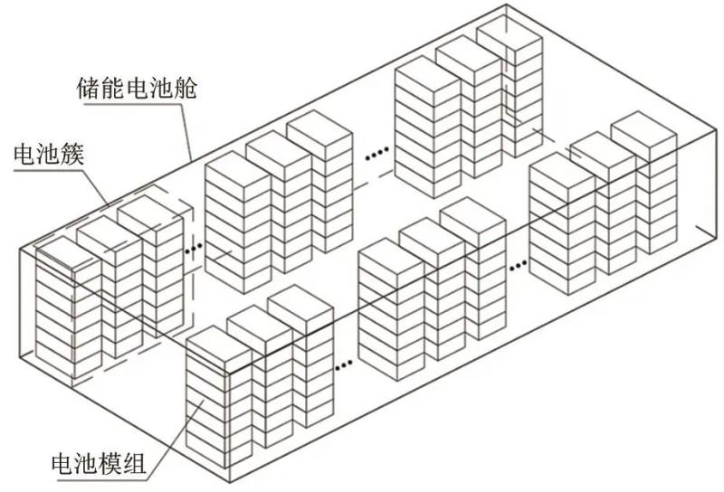 儲(chǔ)能電池艙是化學(xué)儲(chǔ)能電站主要設(shè)備,一般利用標(biāo)準(zhǔn)集裝箱建造,箱內(nèi)設(shè)置數(shù)百塊磷酸鐵鋰電池模組;每塊電池模組由幾十只單體電池組成(圖1);按電氣接線,數(shù)十塊電池模組組成一個(gè)電池簇。儲(chǔ)能電池艙內(nèi)的磷酸鐵鋰電池在過(guò)充、過(guò)載等條件下,電池內(nèi)部發(fā)生化學(xué)反應(yīng)而不斷產(chǎn)熱,熱量聚集致熱失控引起火災(zāi)甚至爆炸,具有較大的火災(zāi)危險(xiǎn)性。研究成果表明磷酸鐵鋰電池的火災(zāi)危險(xiǎn)性主要體現(xiàn)在:①發(fā)生熱失控的溫度較低(約140 ℃);②在熱失控過(guò)程產(chǎn)生大量可燃?xì)怏w,在儲(chǔ)能電池艙(密閉空間)內(nèi)具有爆炸風(fēng)險(xiǎn);③電池燃燒溫度較高,電池模組燃燒時(shí)最高溫度可達(dá)700 ℃以上,而簇級(jí)電池燃燒時(shí)最高溫度則超過(guò)1000 ℃;④儲(chǔ)能電池艙布置了數(shù)量眾多的單體電池(1座儲(chǔ)能電池艙最多可放置約1萬(wàn)只單體電池),其火災(zāi)隱患與單體電池?cái)?shù)量成正比??偨Y(jié)各方研究成果:適用于撲滅磷酸鐵鋰電池火災(zāi)的滅火劑最重要的特征是其在迅速滅火的同時(shí)還具有較強(qiáng)的持續(xù)冷卻能力,水基滅火劑具有良好的冷卻效能,可有效抑制鋰電池?zé)崾Э?,是較好的滅火介質(zhì),也是一般采用的終極滅火措施。但水基滅火劑可能存在水漬影響引起磷酸鐵鋰電池發(fā)生次生危害,且水基滅火系統(tǒng)(如細(xì)水霧滅火系統(tǒng))在高寒地區(qū)平時(shí)的防凍壓力較大。全氟己酮滅火劑具備良好的火災(zāi)抑制能力,不會(huì)對(duì)保護(hù)對(duì)象產(chǎn)生危害、損害作用,優(yōu)點(diǎn)較為突出,但對(duì)其是否適用于撲滅儲(chǔ)能鋰電池火災(zāi)并抑制其熱失控尚有爭(zhēng)議,且相關(guān)設(shè)計(jì)規(guī)范缺乏。