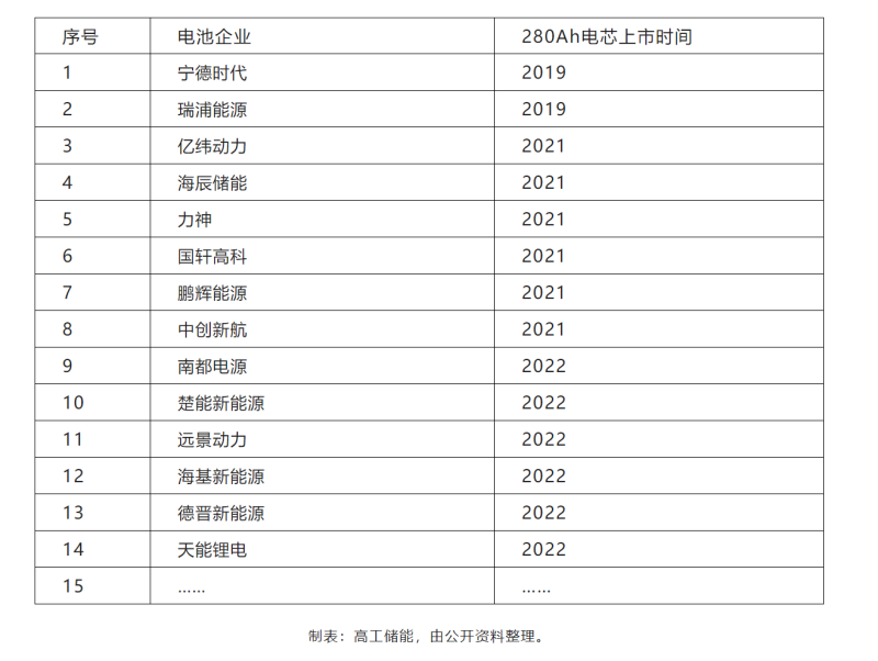 彼時業(yè)內(nèi)具備規(guī)模化生產(chǎn)、供應單體280Ah電芯的廠商也唯有寧德時代一家企業(yè)而已。卻讓眾多電池產(chǎn)商看到了其中的商機,緊鑼密鼓加入此賽道。