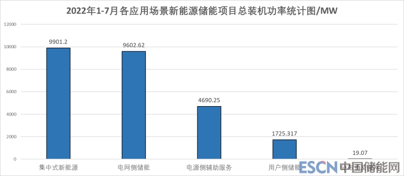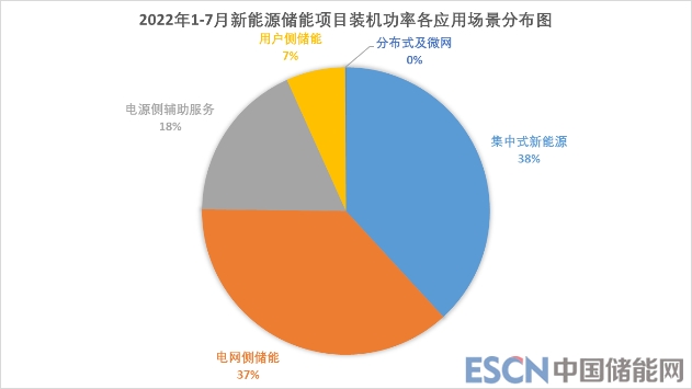 2021年1-7月國內(nèi)新增新型儲能(含規(guī)劃、在建和運(yùn)行)項(xiàng)目個數(shù)266個,儲能規(guī)模11.82GW,其中新能源發(fā)電側(cè)裝機(jī)超過50%。對比來看,2022年1-7月新型儲能項(xiàng)目投運(yùn)、擬在建、建設(shè)中的項(xiàng)目總裝機(jī)功率同比增長24.94%,而與去年電源側(cè)輔助服務(wù)占據(jù)主要比重的情況不同,今年集中式新能源項(xiàng)目以及電網(wǎng)側(cè)項(xiàng)目總裝機(jī)功率旗鼓相當(dāng),二者占比近75%,用戶側(cè)儲能在裝機(jī)功率比例上略有下降,而分布式及微網(wǎng)新能源項(xiàng)目占比依然很低,項(xiàng)目裝機(jī)容量上比重很輕,發(fā)展任重道遠(yuǎn),這與當(dāng)下的鄉(xiāng)村振興政策落實(shí)不到位亦有關(guān)。