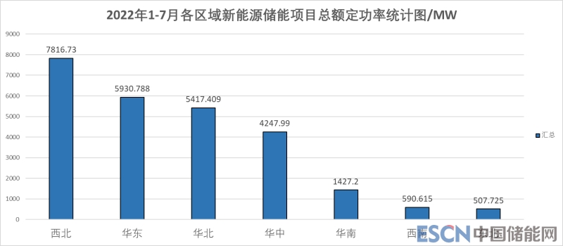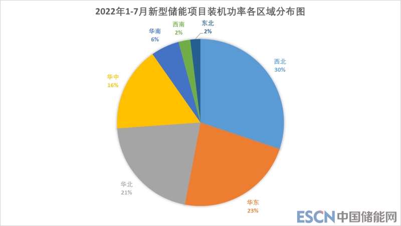 由各區(qū)域新能源項(xiàng)目總裝機(jī)功率統(tǒng)計(jì)圖可以看出,2022年1-7月新能源裝機(jī)主要集中在西北、華北、華中和華東地區(qū),分別占比30%、23%、21%和16%.