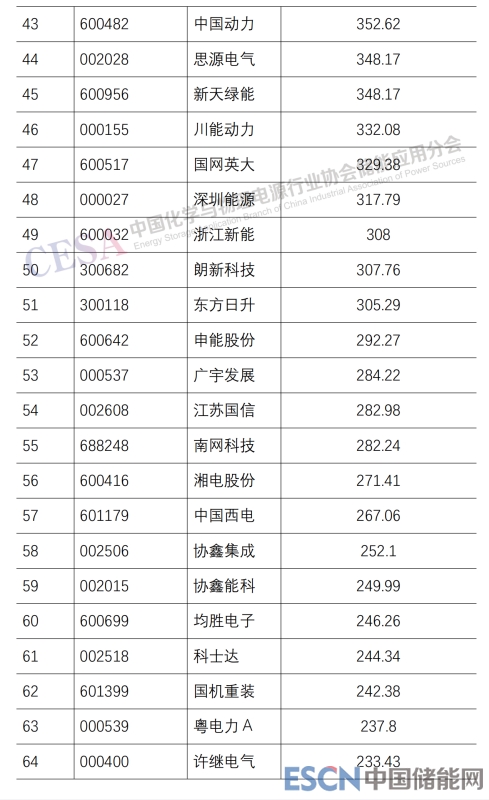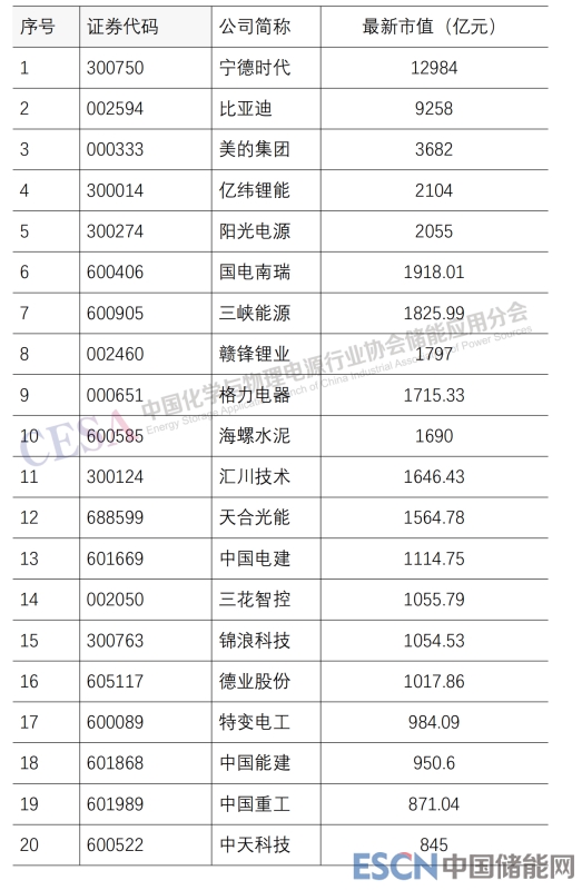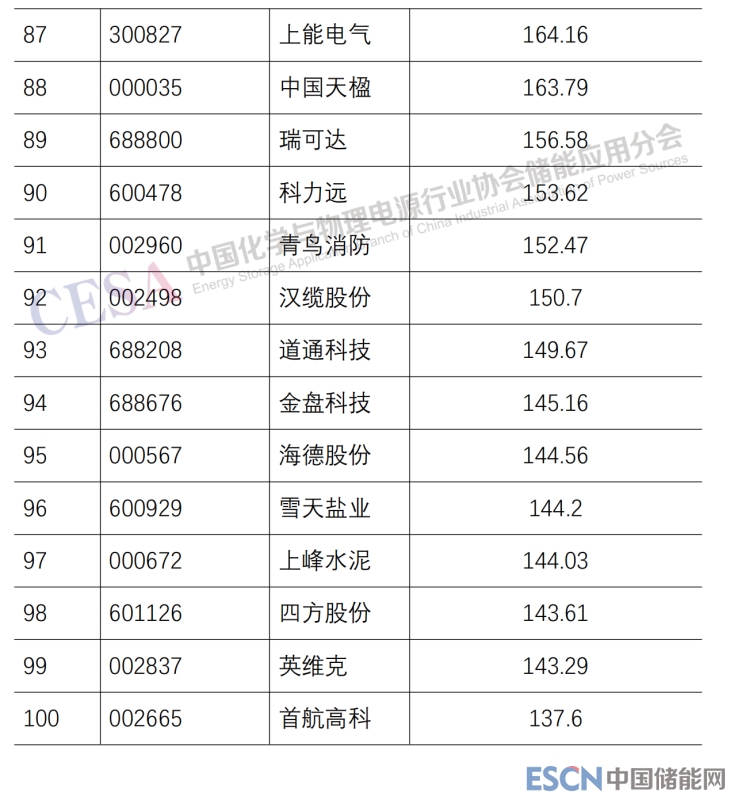 2022 年儲(chǔ)能上市公司總市值 TOP100 出爐