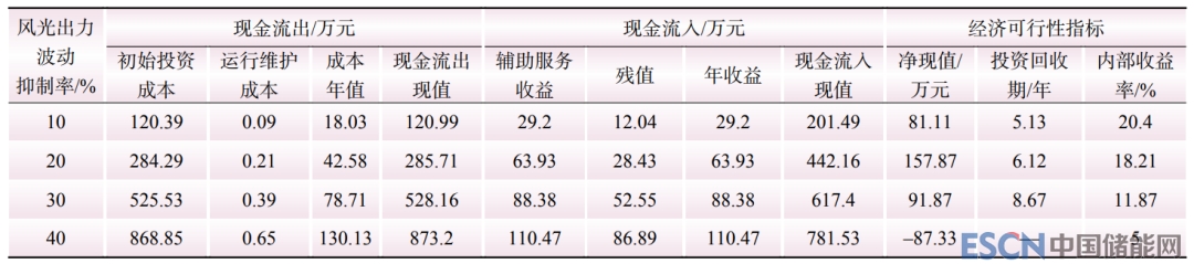 (2)儲能成本對投資經(jīng)濟性的影響。