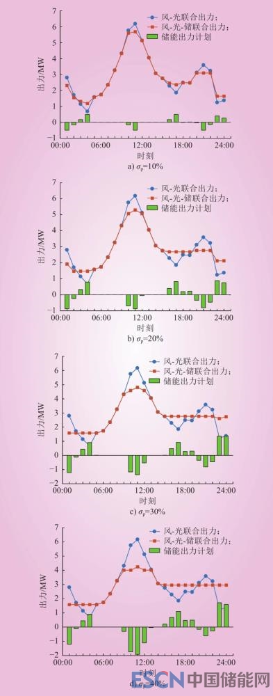 圖4 不同σp下風-光-儲聯(lián)合出力情況