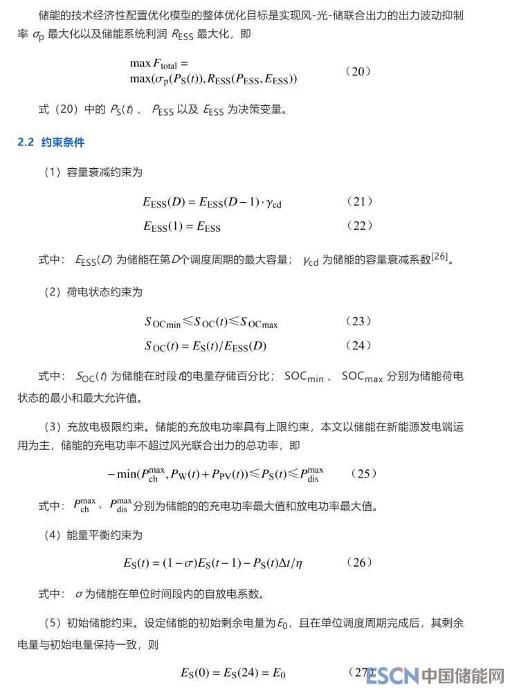 2 儲能技術經(jīng)濟性優(yōu)化配置模型