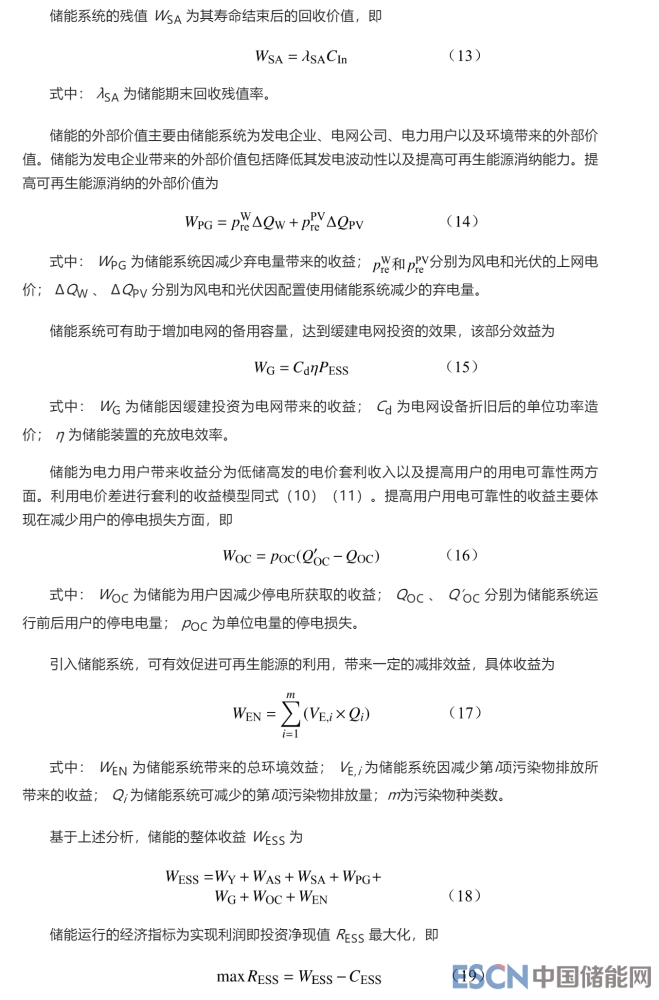 目前,國內(nèi)外學者就儲能在不同應用場景下的規(guī)劃配置、運營管理以及技術經(jīng)濟分析等方面開展了廣泛的研究。新能源發(fā)電側,文獻[2-6]在考慮風電、光伏出力隨機波動性以及電力供需靈活性等因素影響下,提出兼顧經(jīng)濟性和靈活性的多類型儲能優(yōu)化配置方法,以降低新能源出力波動性并提高其利用效率。文獻[7-8]將儲能和需求響應技術納入新能源發(fā)電優(yōu)化調度中,提出由儲能、發(fā)電側以及需求響應側構成的聯(lián)合優(yōu)化模型,以促進新能源的出力消納及其經(jīng)濟性運行。在電網(wǎng)側,文獻[9-13]基于電網(wǎng)側儲能技術的需求場景、投資價值,提出電網(wǎng)側儲能的商業(yè)運營模式以及選址定容規(guī)劃模型,用以滿足電網(wǎng)側在不同應用場景下對大規(guī)模儲能技術進行經(jīng)濟高效運營的需求。在用戶側,文獻[14-17]通過構建峰谷電價、實時電價與用戶側儲能的成本動態(tài)聯(lián)動模型,提出用戶側儲能的經(jīng)濟性優(yōu)化控制策略,以解決用戶側儲能的容量優(yōu)化配置問題并推進其商業(yè)模式的發(fā)展。在儲能的投資分析方面,文獻[18-23]采用全壽命周期成本等方法,考慮商業(yè)運營模式、投資成本和經(jīng)濟效益,對多類型儲能技術在不同應用場景下的投資經(jīng)濟性、系統(tǒng)價值進行了評估測算。