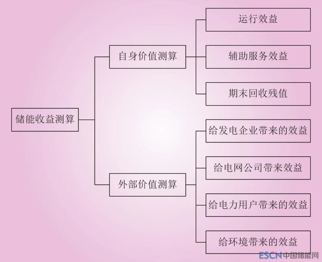 (2)儲能收益。儲能的收益測算主要包括自身價值測算和外部價值測算。其收益構成如圖1所示。