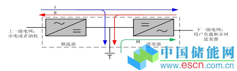 3:當(dāng)光伏系統(tǒng)不發(fā)電或發(fā)出的電能不足以供給用戶負載使用時,通過調(diào)配儲能變流器所接電池里存儲的能量供負載使用。