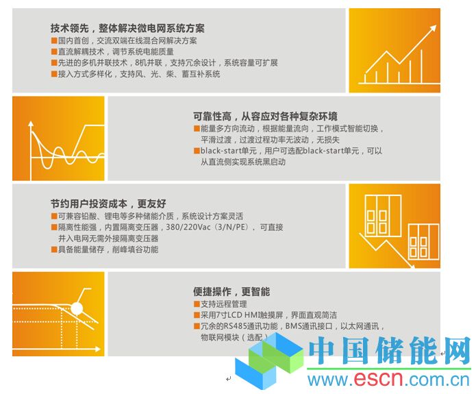 北麂島微電網(wǎng)電站項目采用四臺250kVA并聯(lián)形成微網(wǎng)主干網(wǎng),作為電壓源為系統(tǒng)提供穩(wěn)定優(yōu)質(zhì)的電壓支撐。匯川IBD100系列雙向變換器是國內(nèi)獨創(chuàng)專為可再生能源微電網(wǎng)設(shè)計,特征如下: