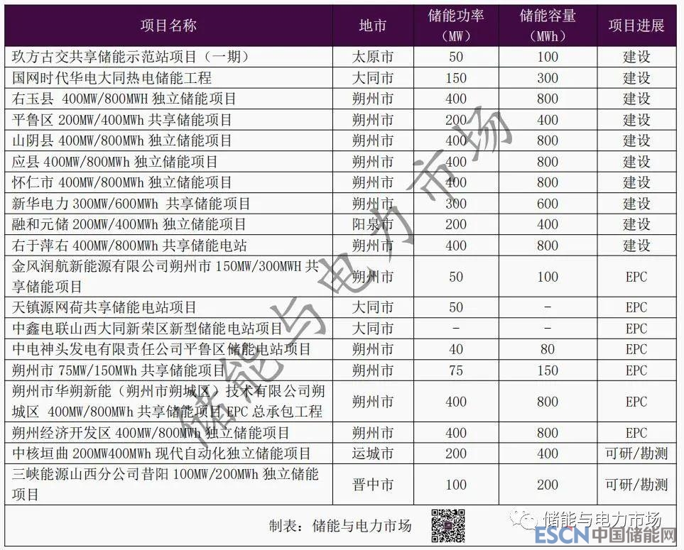 表:山西省已啟動(dòng)的獨(dú)立儲(chǔ)能項(xiàng)目