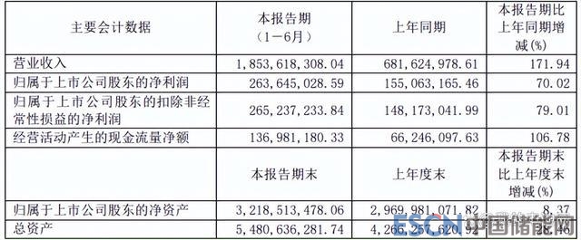 中國(guó)儲(chǔ)能網(wǎng)訊:8月25日晚間,派能科技(688063)披露2022年半年報(bào)。今年上半年,公司實(shí)現(xiàn)營(yíng)收18.54億元,同比增長(zhǎng)171.94%;歸屬于上市公司股東的凈利潤(rùn)2.64億元,同比增長(zhǎng)70.02%。