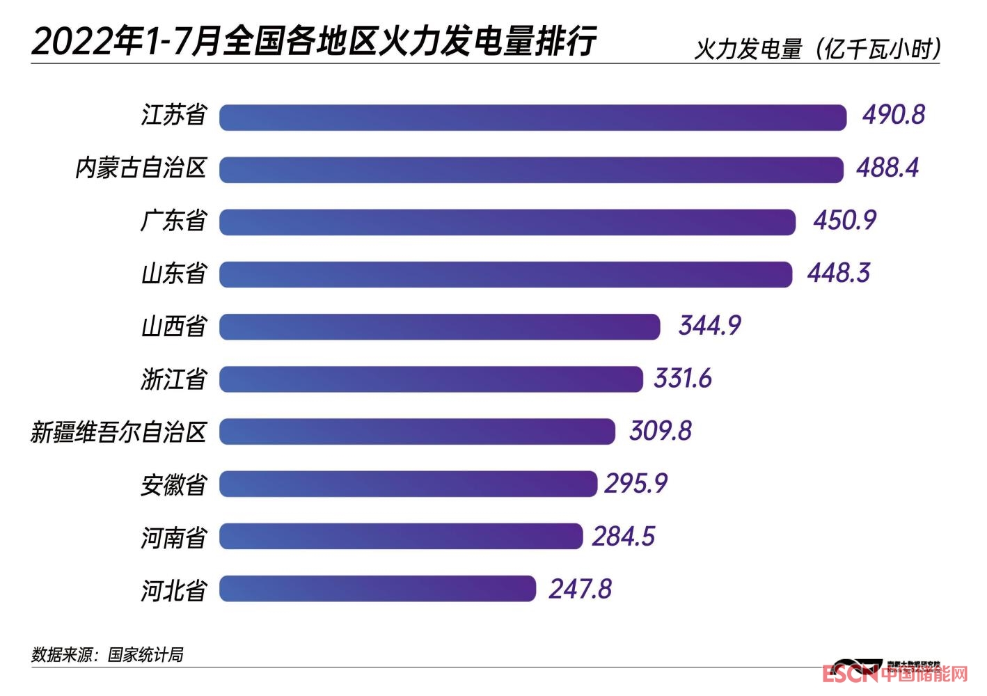 根據(jù)國(guó)家統(tǒng)計(jì)局?jǐn)?shù)據(jù),2022年上半年,全國(guó)共發(fā)電39631.1億千瓦時(shí),同比增長(zhǎng)7%,其中,內(nèi)蒙古自治區(qū)、山東省、江蘇省、廣東省為發(fā)電量最大四省,利用煤炭、石油、天然氣等化石燃料產(chǎn)生電能的火電仍占據(jù)全國(guó)發(fā)電主力。