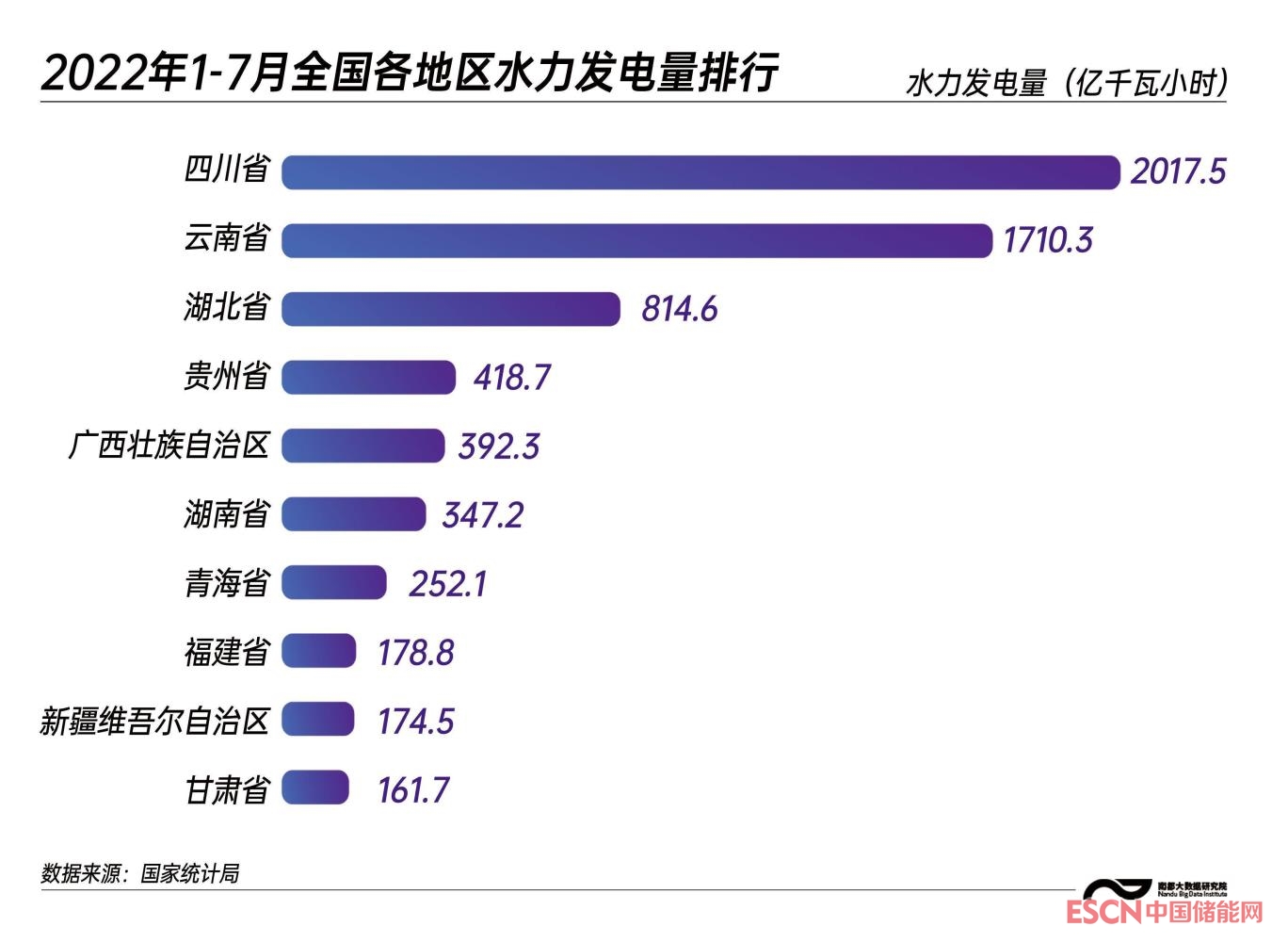 因我國(guó)地勢(shì)復(fù)雜、山川、河流眾多,加上近年來(lái)環(huán)境保護(hù)措施的推行,四川等地發(fā)電因地制宜,主要以水電為主,今年前7月水力發(fā)電量也排全國(guó)第一。在今年波及全球的厄爾尼諾現(xiàn)象影響下,西南多地出現(xiàn)極端高溫干旱天氣,降水量減少,導(dǎo)致水電來(lái)水量減少,疊加夏季高峰用電量需求激增,部分地區(qū)因此出現(xiàn)缺電、限電的局面。