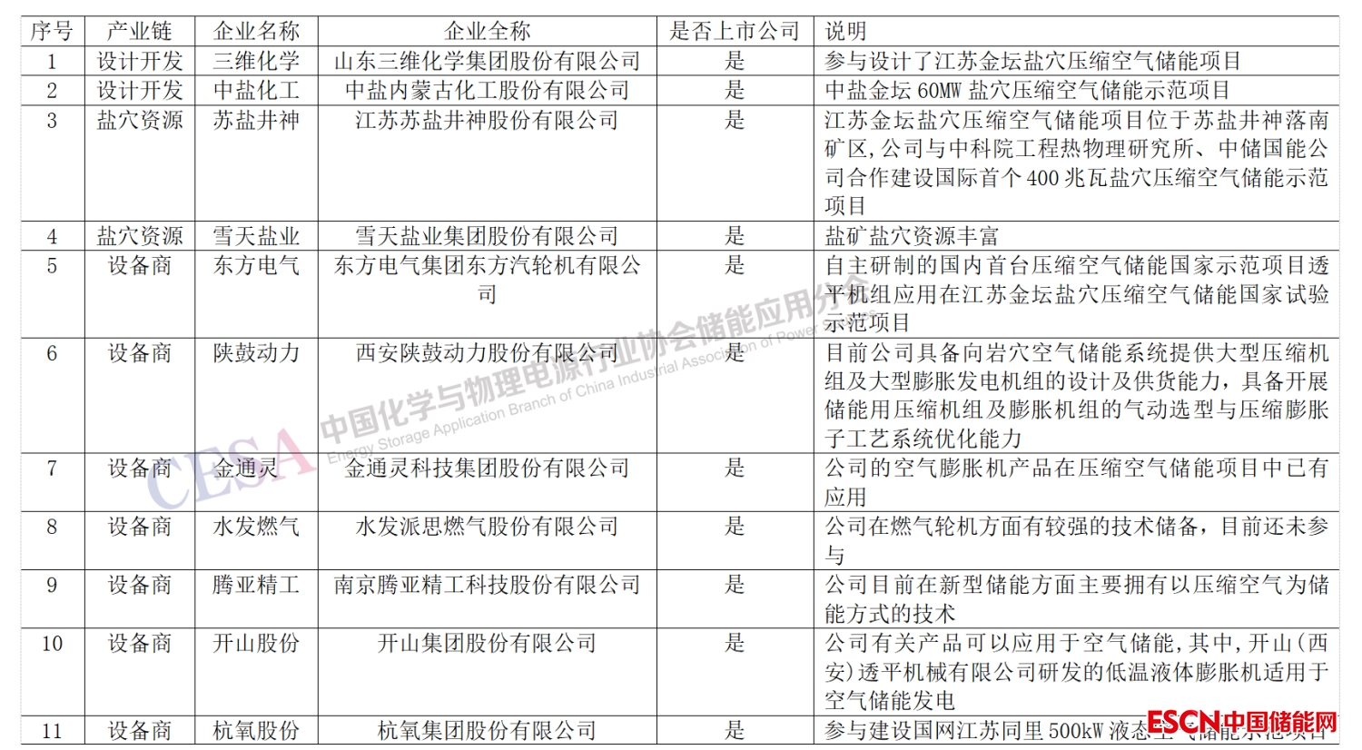 表3 2022國內(nèi)壓縮空氣儲(chǔ)能產(chǎn)業(yè)鏈重點(diǎn)企業(yè)一覽表