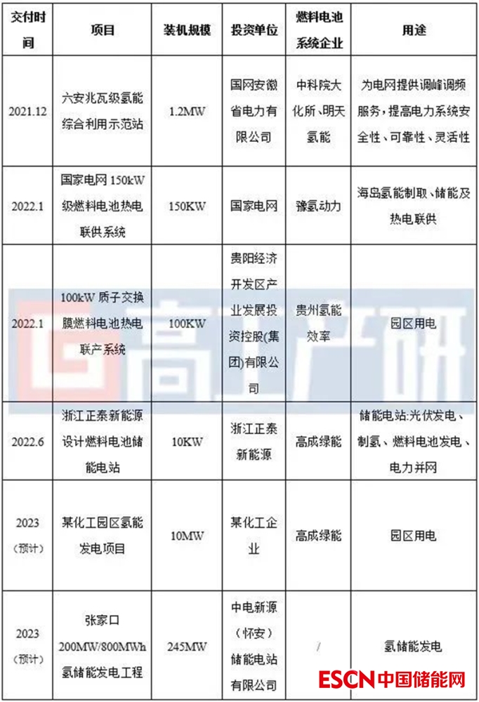 其他燃料電池企業(yè)如高成綠能、愛德曼、氫途科技、明天氫能、鯤華科技等均在推進(jìn)氫儲能發(fā)電業(yè)務(wù)的展開。