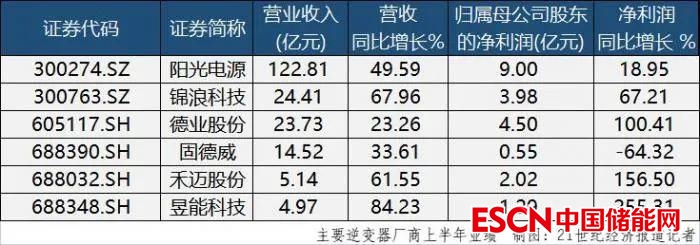 隨著A股上市公司中報披露的收尾,陽光電源(300274.SZ)、錦浪科技(300763.SZ)、固德威(688390.SH)、德業(yè)股份(605117.SH)、禾邁股份(688032.SH)、昱能科技(688348.SH)六家逆變器上市公司悉數(shù)公布了上半年的經(jīng)營情況。