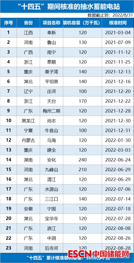 中國儲能網(wǎng)訊:截至 2022 年 8 月 31 日,“十四五”已核準 23 座抽水蓄能電站,總裝機規(guī)模 3050 萬千瓦,項目投資規(guī)模超過 2000 億元。