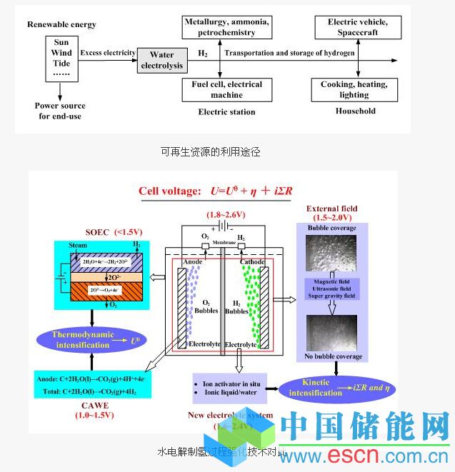 中國儲能網(wǎng)訊:隨著化石能源的枯竭和環(huán)境污染問題的日益突出,可再生能源開發(fā)與應用的步伐逐步加快。然而,受地域性、間歇性和不可存儲性等因素限制,一次再生能源(如太陽能、風能、潮汐能等)的開發(fā)與人類的用電周期并不相適應。利用一次再生能源制取可存儲的氫氣作為二次再生能源,有望成為調(diào)節(jié)可再生能源開發(fā)與人類靈活方面地使用清潔能源的中間載體。從資源、環(huán)境、純度等各方面考慮,水電解制氫具有技術(shù)成熟、原料豐富、過程清潔、氫氣純度高等優(yōu)點,但高的電解能耗成為該技術(shù)的瓶頸,目前世界上僅有不到5%的氫氣是通過水電解的方法制取。因此,在未來要實現(xiàn)再生能源的最大化利用,就必須設法降低水電解制氫的能耗。