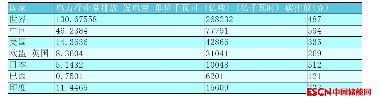 表 3 2020 年世界主要國家(地區(qū))發(fā)電量和碳排放有關(guān)指標(biāo)