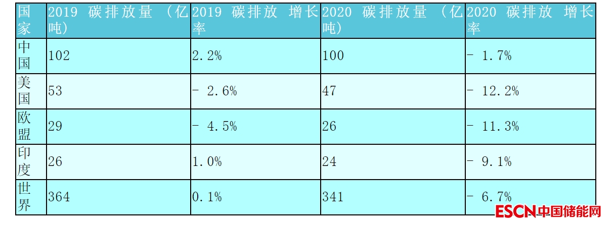 表2 2019-2020世界主要國家(地區(qū))碳排放總量