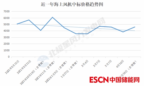 2021年10月19日,華潤(rùn)電力蒼南1#400MW海上風(fēng)電項(xiàng)目風(fēng)機(jī)(含塔架)中標(biāo)結(jié)果公布,中國(guó)海裝以4061元/kW的價(jià)格打響了海上風(fēng)電平價(jià)“第一槍”,此后海上風(fēng)機(jī)價(jià)格4000元左右成為常態(tài)。