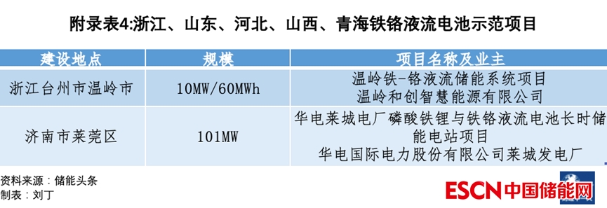 目前,鐵鉻液流電池儲能在中國應(yīng)用還較少,《財經(jīng)十一人》根據(jù)儲能頭條的數(shù)據(jù)統(tǒng)計整理,5省范圍內(nèi)鐵鉻液流電池儲能的示范項目如下:
