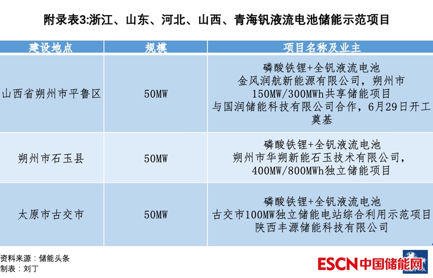 《財經(jīng)十一人》根據(jù)儲能頭條的數(shù)據(jù)統(tǒng)計整理,5省范圍內(nèi)釩液流電池儲能的示范項目如下: