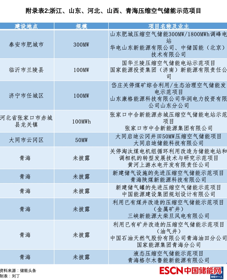 《財經(jīng)十一人》根據(jù)儲能頭條的數(shù)據(jù)統(tǒng)計整理,5省范圍內(nèi)壓縮空氣儲能電池的示范項目如下: