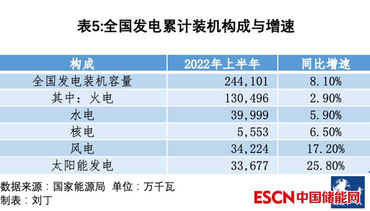 另一方面,中國新能源裝機量和投資增長都較快。2022年上半年,中國風電和光伏發(fā)電的累計裝機量分別同比增長17.2%和25.8%,達到3.42億千瓦和3.37億千瓦。而根據(jù)國家發(fā)改委和國家能源局等九部委于2022年6月聯(lián)合印發(fā)的《“十四五”可再生能源發(fā)展規(guī)劃》,到2025年,中國風電和光伏發(fā)電總裝機容量要達到12億千瓦以上,比目前增長一倍。