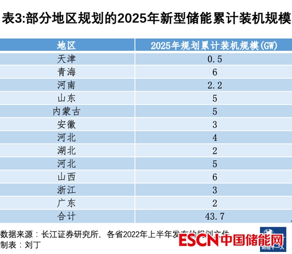 若按各地方政府的“十四五”規(guī)劃,到2025年末,加總后的新型儲能裝機規(guī)模將高達43.7GW。
