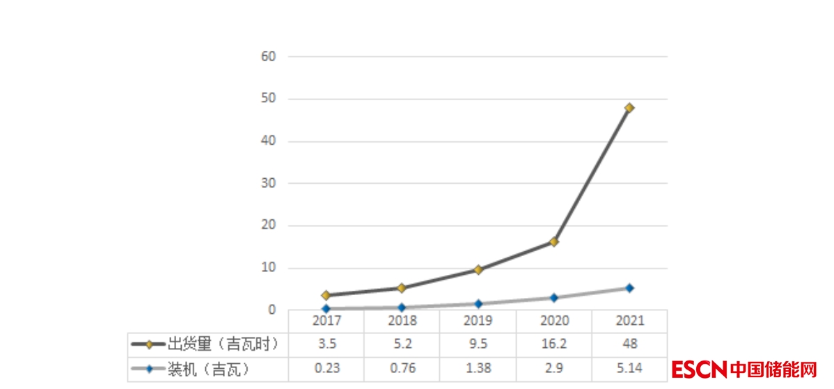 圖6 我國儲能鋰離子電池出貨量和裝機增長情況