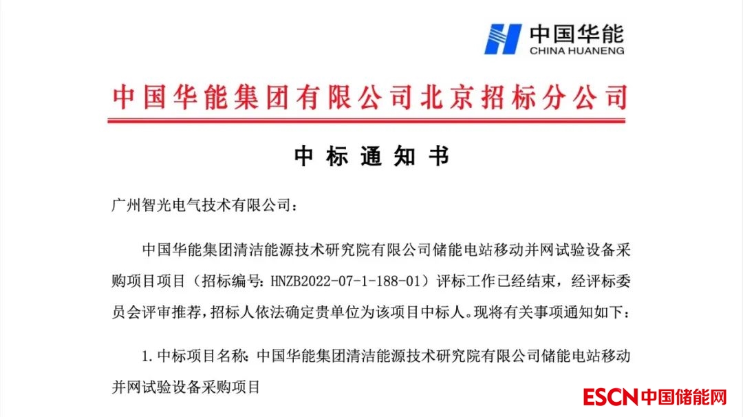 中國儲能網(wǎng)訊:2022年9月13日,廣州智光電氣股份有限公司控股子公司廣州智光電氣技術(shù)有限公司(以下簡稱“智光電氣技術(shù)”)成功中標中國華能集團清潔能源技術(shù)研究院有限公司儲能電站移動并網(wǎng)試驗設(shè)備采購項目。