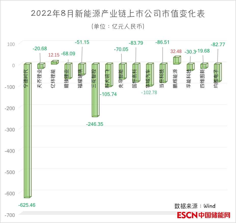 8月,新能源汽車產(chǎn)業(yè)鏈相關(guān)個股表現(xiàn)同樣低迷。贛鋒鋰業(yè)(SZ002460,股價83.42元,市值1682億元)市值減少了68.1億元;三花智控(SZ002050,股價29.26元,市值1051億元)市值減少了246.4億元。