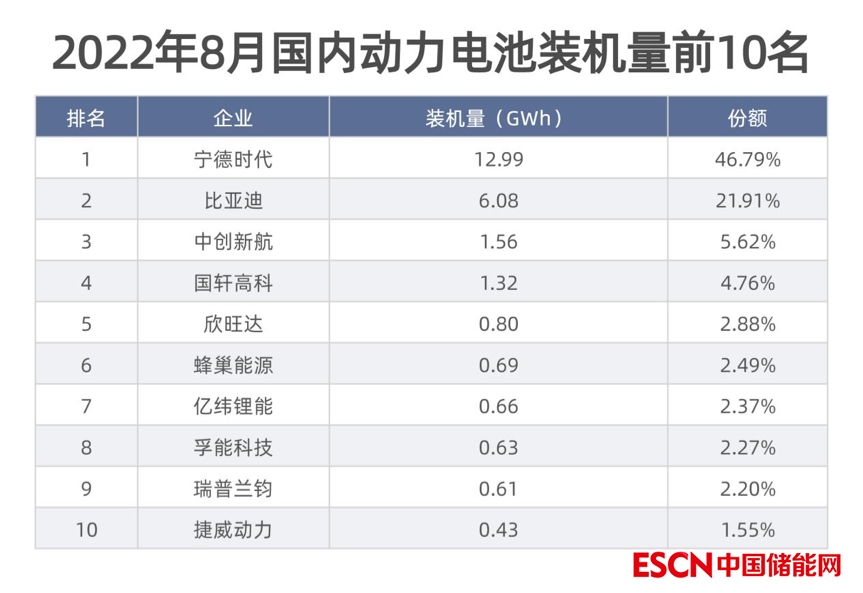 具體到動力電池供應(yīng)商來看,8月,我國動力電池裝車量排名前三的企業(yè)仍然是寧德時代、比亞迪和中創(chuàng)新航,三者共搶占了近四分之三的市場份額。