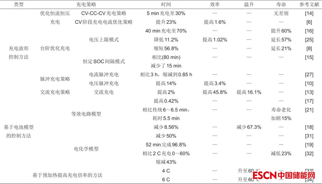 本文首先分充電波形控制方法、基于電池模型的控制方法和通過預(yù)加熱電池提高充電倍率的方法3種詳細(xì)介紹快充策略,之后討論和比較各充電策略,最后總結(jié)整個充電策略發(fā)展趨勢。