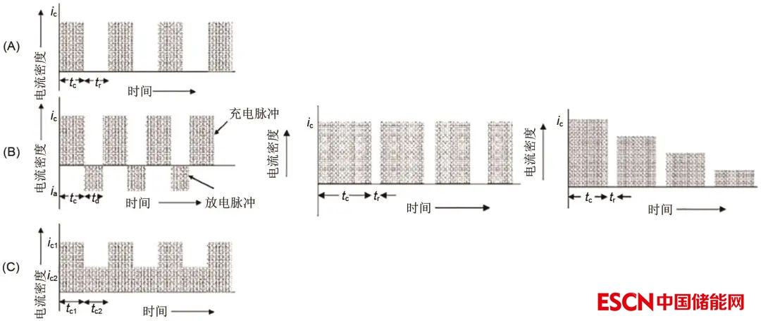 脈沖充電策略可以視為不連續(xù)的電流脈沖充電或者電壓脈沖充電。它最早是用于鉛酸電池的快速充電,隨后被應(yīng)用于鋰離子電池充電。其主要目的是減少濃差極化,降低局部負(fù)極電位變?yōu)樨?fù)電位的風(fēng)險以及減小由于鋰的不均勻插入所引起的局部應(yīng)力變化。