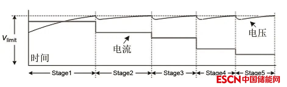 圖3 以電壓上限為截止模式的五步臺階充電策略